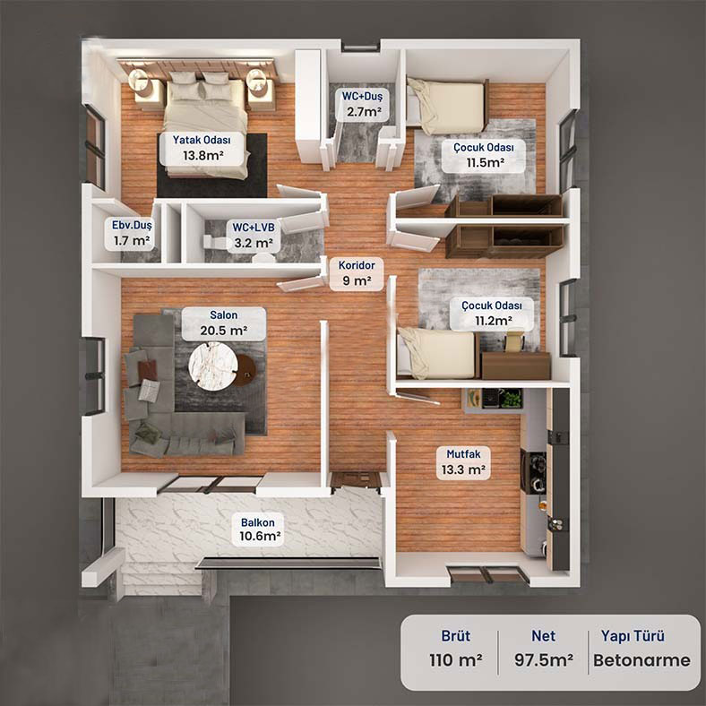 113 Metrekare Betonarme Ev