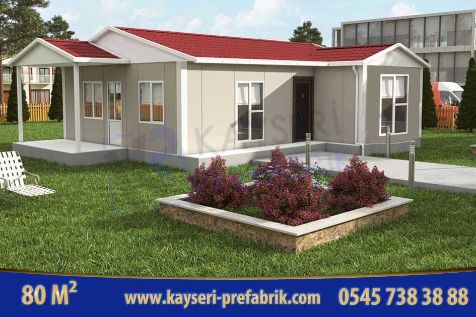 80 metrekare prefabrik ev özellikle yaşam anlayışına sahip olanlar için ideal evlerdir. Prefabrik ev, 250 cm tavan yüksekliğine sahiptir, pencereler PVC ile kaplıdır.